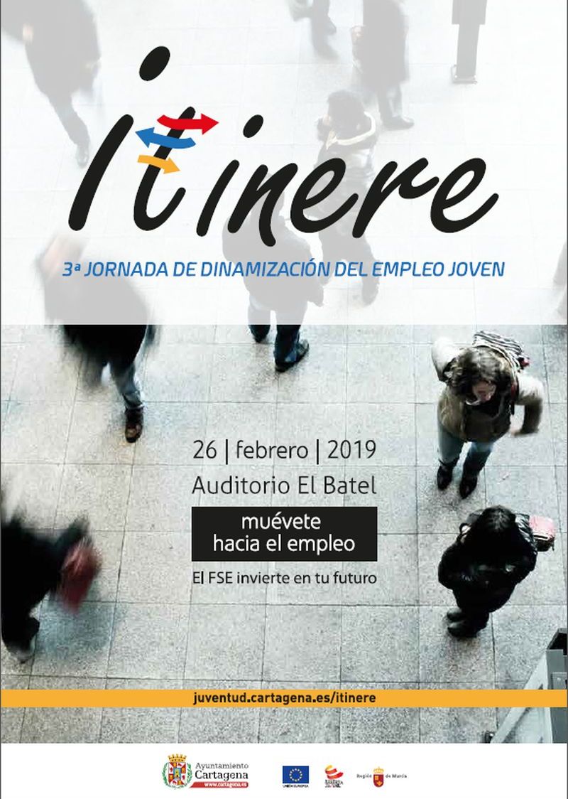 El Ayuntamiento de Cartagena organiza una nueva edición de Itinere, en el Auditorio y Palacio de Congresos El Batel el martes, 26 de febrero, y que se desarrollará durante todo el día, en horario de 9:00 a 14:00 horas y de 16:00 a 20:00 horas.
